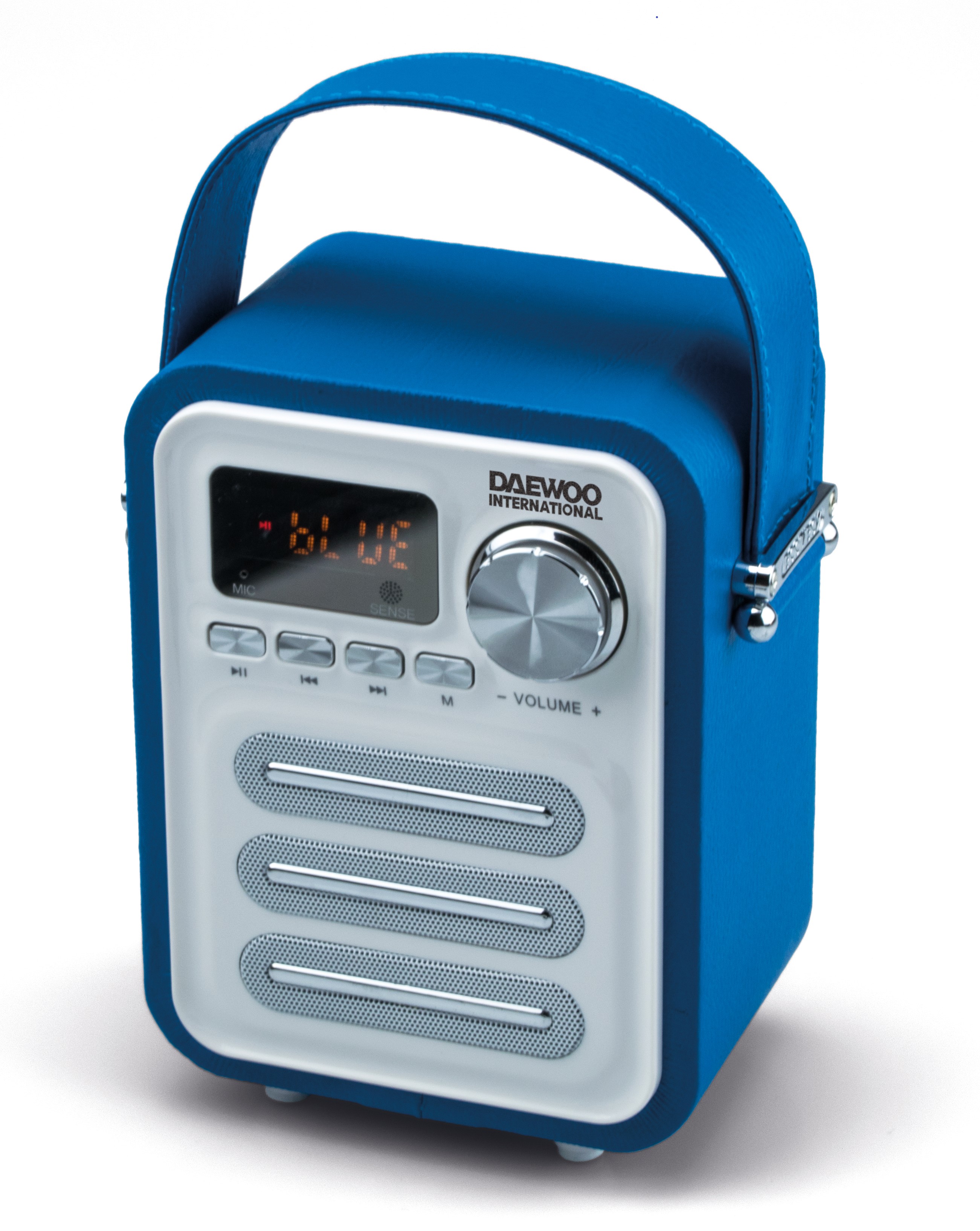 Daewoo Bluetooth speaker with 5W power. It has open listening, rechargeable battery, micro SD, USB and Aux-IN ports.